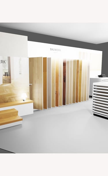 Non serve fare interventi faraonici per ottenere dei risultati eclatanti, utilizzando il materiale di "Bauwerk" (cassettiere, portaplance..) ho progettato un angolo parquet presso uno dei rivenditori di Torino dal format espositivo più elegante. uno spazio funzionale che, con l'ausilio di forex appositamente progettati, ha legato perfettamente l'immagine elegante di Bauwerk con quella sobria e pulita del cliente.